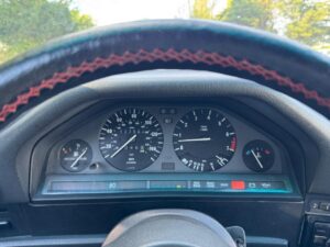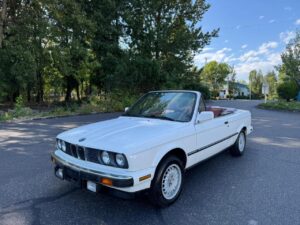 Als je uitgaat van een goede tot zeer goede staat (goed onderhouden, geen of weinig roest, originele onderdelen, kap in goede staat, interieur verzorgd), denk ik dat deze witte 1987 325i Cabriolet met rood leer ergens tussen de € 25.000 en € 35.000 waard kan zijn op de Nederlandse markt. Als hij uitmuntend is (bijv. perfect gerestaureerd, lage km, complete historie, zeldzame opties), kan hij misschien de € 35.000-€ 40.000 aantikken. Ons exemplaar komt uit Amerika, is roestvrij maar heeft wel aardig wat kilometers gereden.